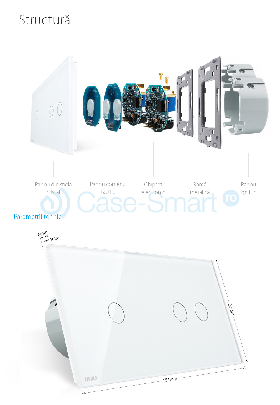 Specificatii Intrerupator simplu + dublu touch Livolo