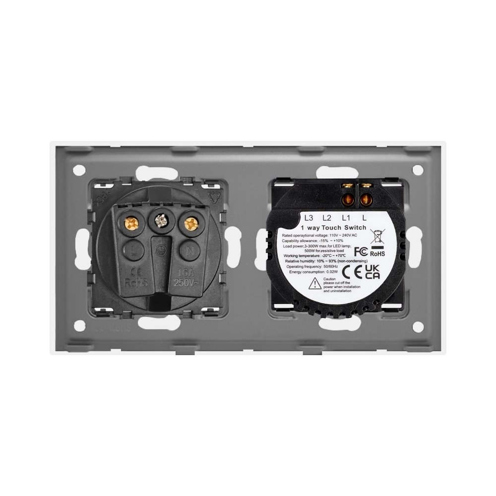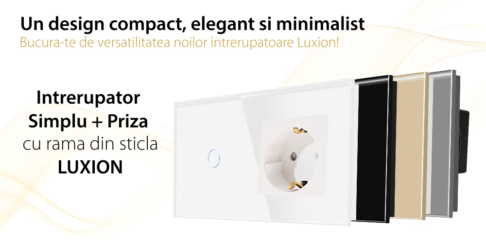 Intrerupator Simplu + Priza cu Rama din Sticla LUXION SmartElectro IntelligentHouse