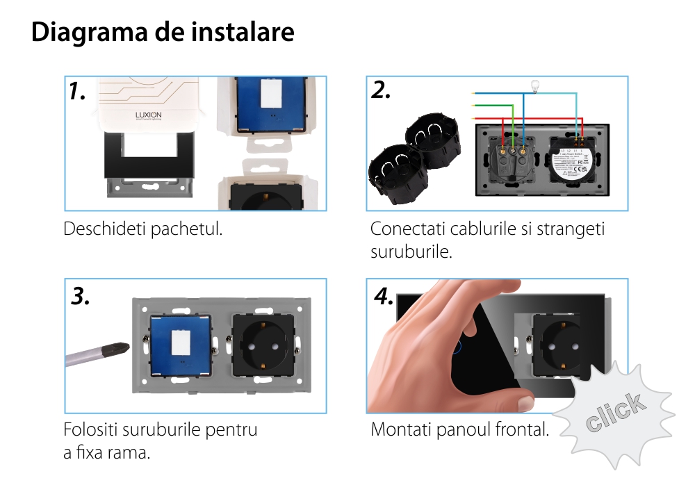 Intrerupator Simplu + Priza cu Rama din Sticla LUXION SmartElectro IntelligentHouse