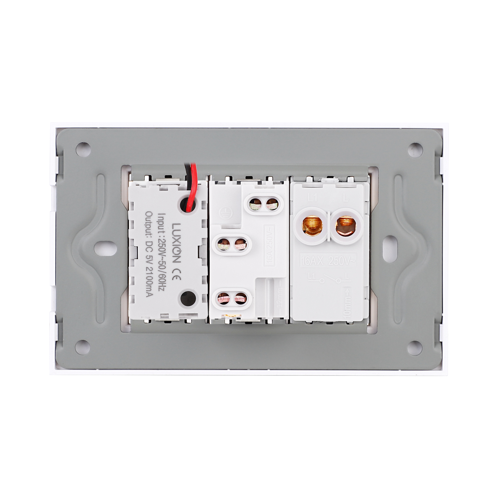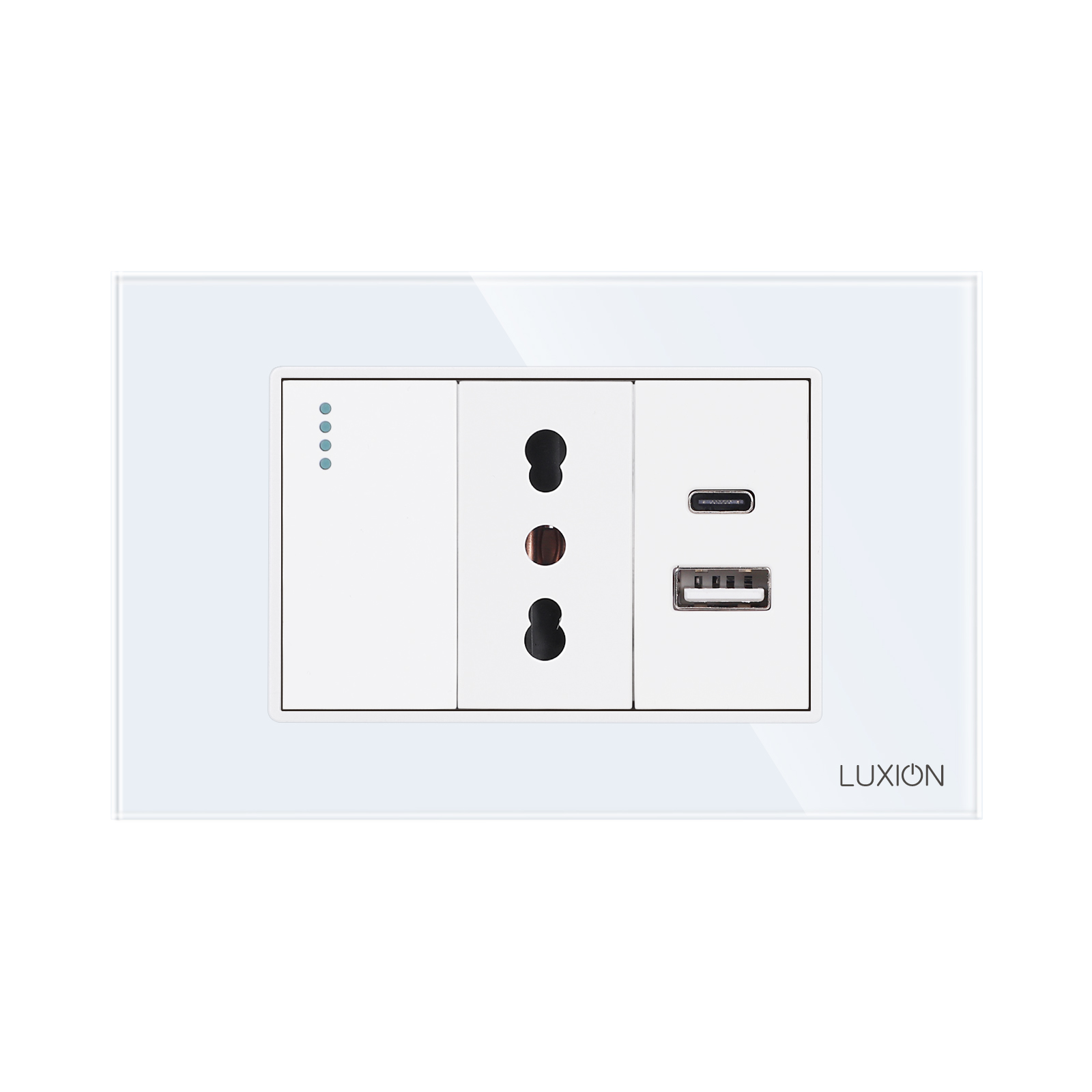 Intrerupator Simplu + Priza Ingusta si USB A+C cu Rama din Sticla LUXION, Standard Italian, 3M SmartElectro IntelligentHouse