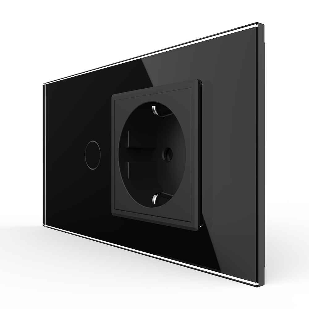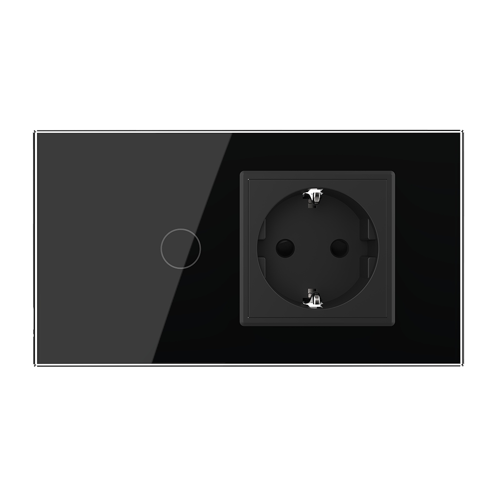 Intrerupator Simplu + Priza LIVOLO cu Rama Din Sticla, Standard Italian, 4M SmartElectro IntelligentHouse