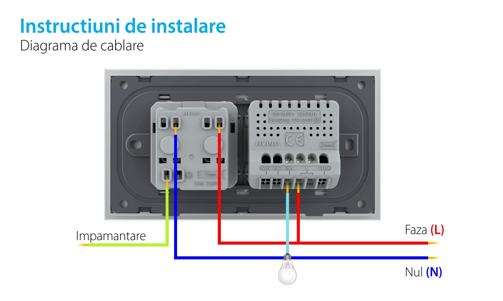 Specificatii Intrerupator Simplu + Priza LIVOLO Rama