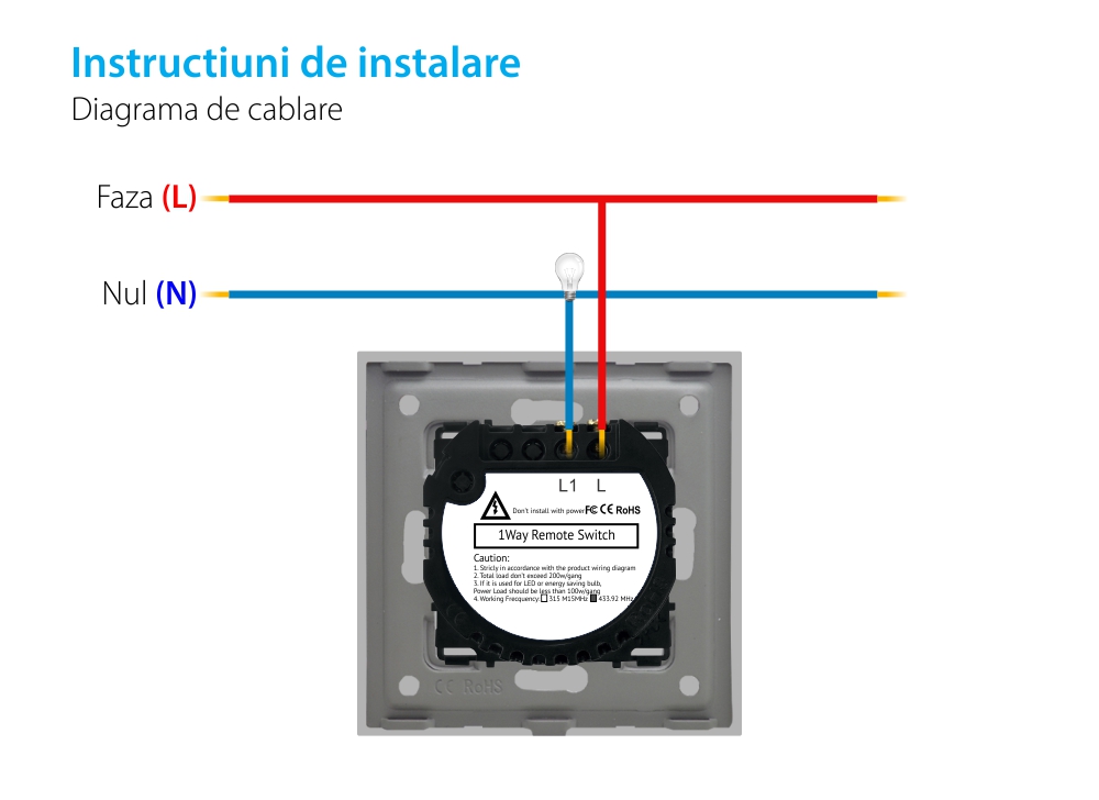 Specificatii Intrerupator Simplu RF433 Touch Sticla LUXION