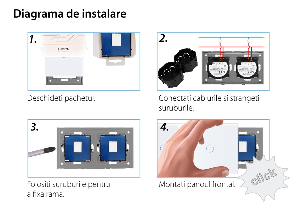 Intrerupator Simplu + Simplu cu Touch din Sticla LUXION SmartElectro IntelligentHouse