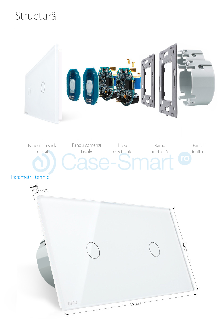 Intrerupator simplu + simplu cu touch Livolo din sticla SmartElectro IntelligentHouse