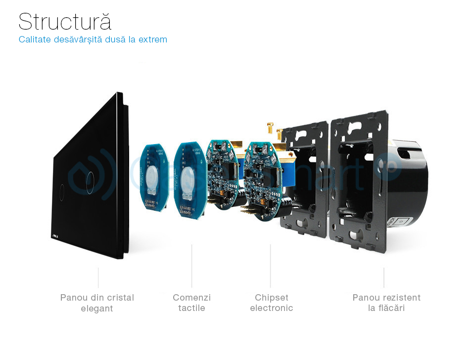 Intrerupator simplu + simplu cu touch Livolo din sticla SmartElectro IntelligentHouse