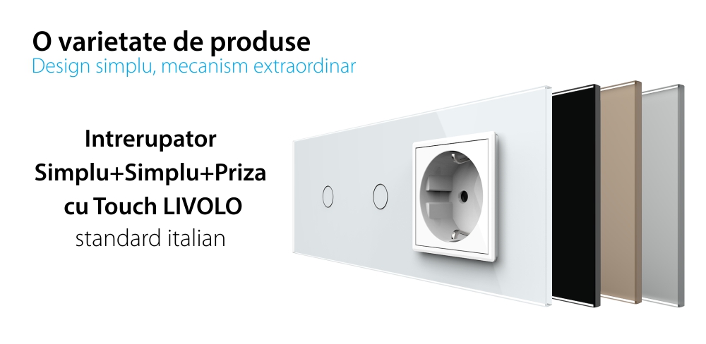 Intrerupator Simplu + Simplu + Priza LIVOLO cu Rama Din Sticla, Standard Italian, 6M SmartElectro IntelligentHouse