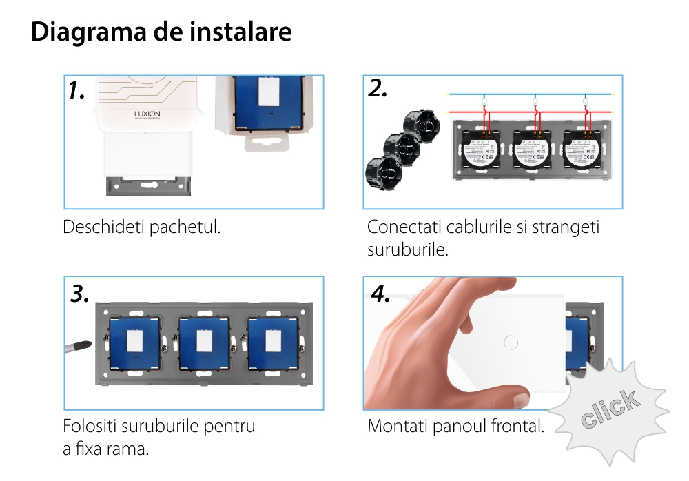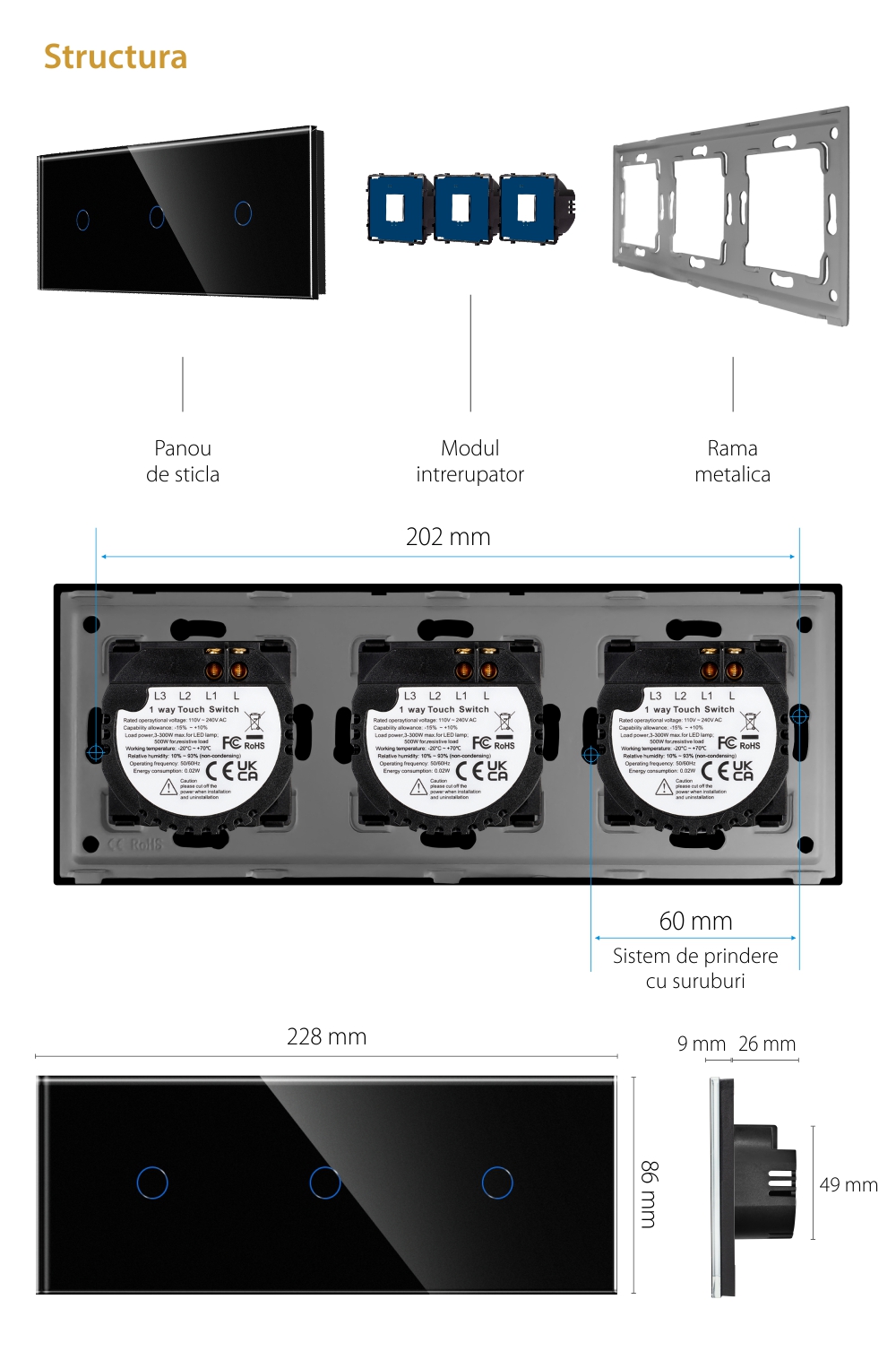 Intrerupator Simplu + Simplu + Simplu cu Touch din Sticla LUXION SmartElectro IntelligentHouse