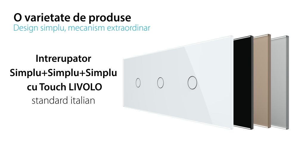 Intrerupator Simplu + Simplu + Simplu cu Touch LIVOLO cu Rama Din Sticla, Standard Italian, 6M SmartElectro IntelligentHouse