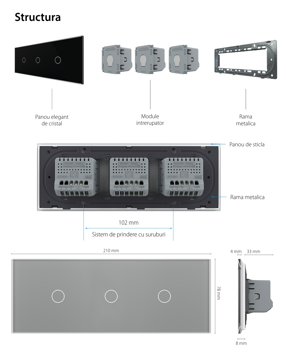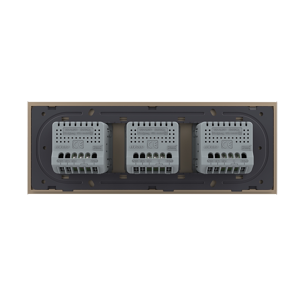 Intrerupator Simplu + Simplu + Simplu cu Touch LIVOLO cu Rama Din Sticla, Standard Italian, 6M SmartElectro IntelligentHouse