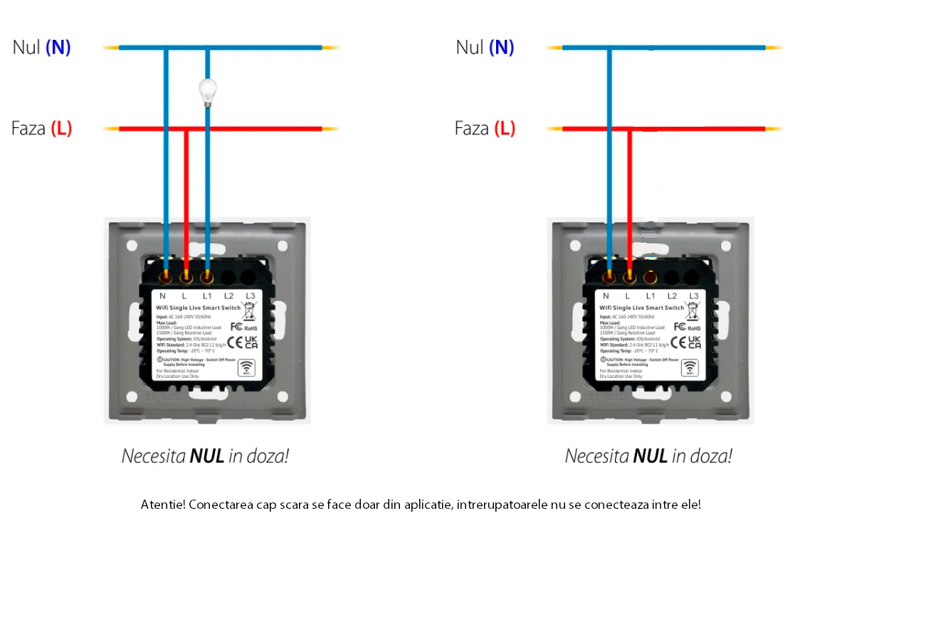 Intrerupator simplu cu touch din sticla Luxion, Wi-Fi. Se conecteaza direct la internet, fara ajutorul unui hub! Brand-ul de intrerupatoare LUXION se diferentiaza prin design-ul compact, elegant si minimalist. Sunt versatile, iar senzorul tactil este foarte precis, identic cu cel al unui smartphone. Structura este durabila, iar intrerupatoarele nu se decoloreaza in timp. Este un produs practic, fabricat din materiale de calitate si rezistent in timp, ce ofera utilitate si confort casei tale. Instalare: cu adaptorul Wifi montat in paralel la unul dintre becuri nu necista nul. Se poate monta si fara adaptorul Wifi, insa intrerupatorul are nevoie de nul Aceste intrerupatoare functioneaza cap scara / cruce prin automatizare, unde necesita nul. Pentru sistem cap scara / cruce clasic, se recomanda intrerupatoarele ZigBee