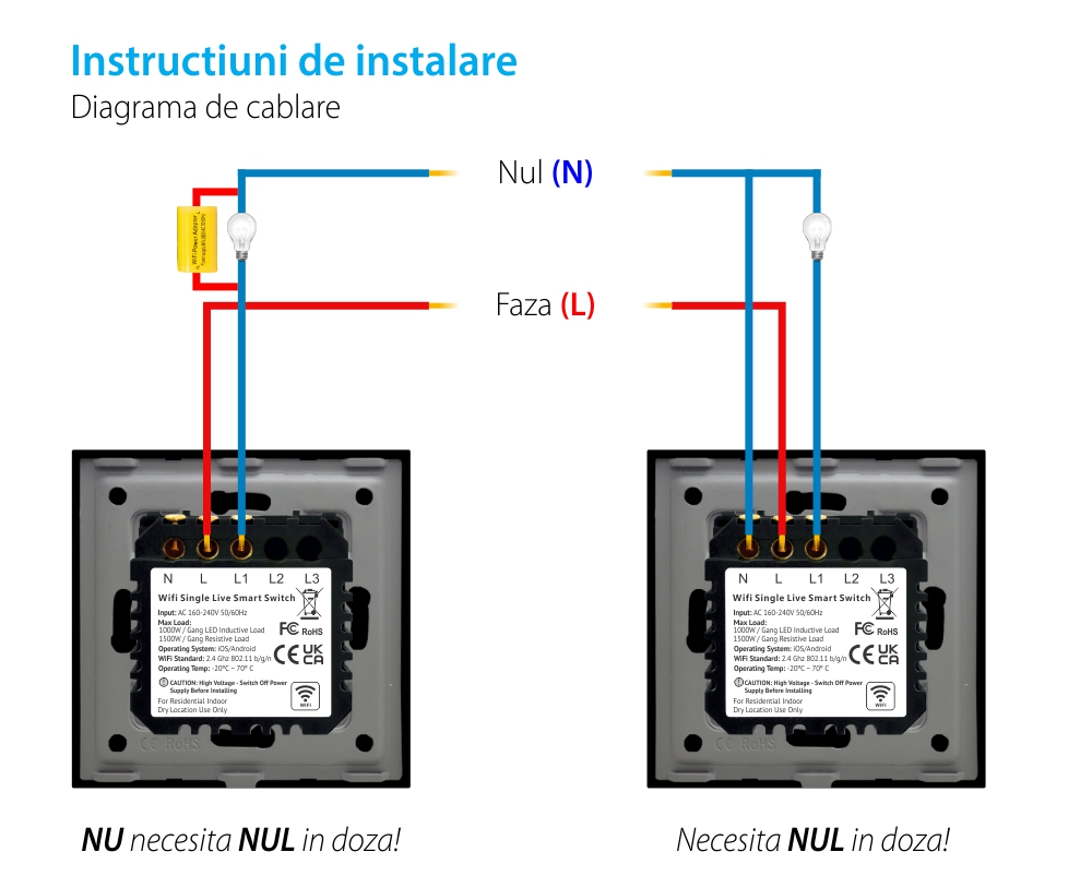 Specificatii Intrerupator Simplu Wi-Fi Touch Sticla Rama