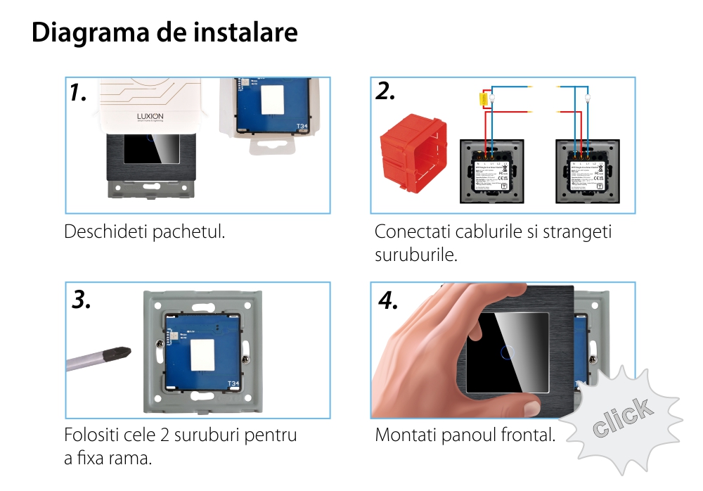 Intrerupator simplu cu touch din sticla si rama de aluminiu LUXION,Wi-Fi. Se conecteaza direct la internet, fara ajutorul unui hub! Brand-ul de intrerupatoare LUXION se diferentiaza prin design-ul compact, elegant si minimalist. Sunt versatile, iar senzorul tactil este foarte precis, identic cu cel al unui smartphone. Structura este durabila, iar intrerupatoarele nu se decoloreaza in timp. Este un produs practic, fabricat din materiale de calitate si rezistent in timp, ce ofera utilitate si confort casei tale. Instalare: cu adaptorul Wifi montat in paralel la unul dintre becuri nu necesista nul. Se poate monta si fara adaptorul Wifi, insa intrerupatorul are nevoie de nul Aceste intrerupatoare functioneaza cap scara / cruce prin automatizare, unde necesita nul. Pentru sistem cap scara / cruce clasic, se recomanda intrerupatoarele ZigBee