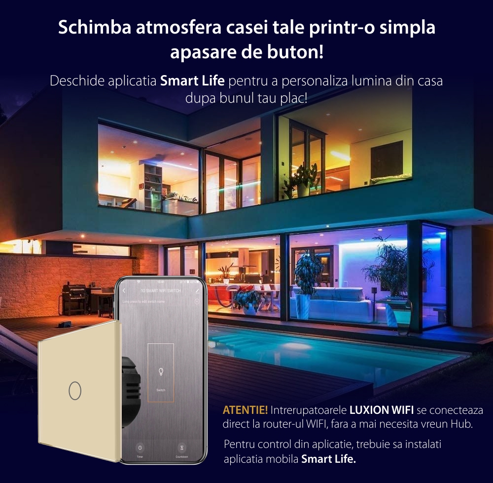 Intrerupator Simplu Wi-Fi + RF433 cu Touch din Sticla LUXION SmartElectro IntelligentHouse