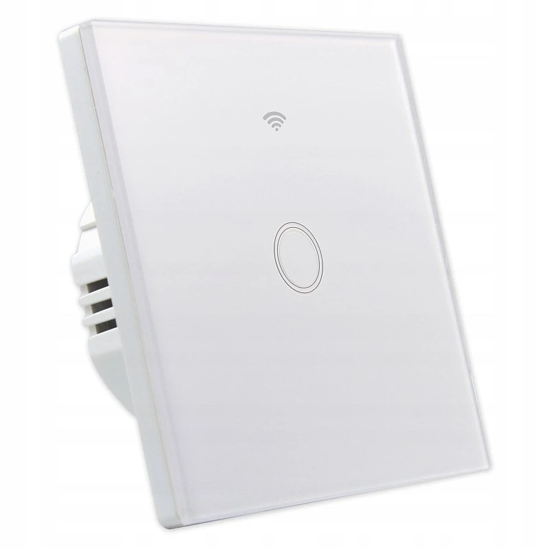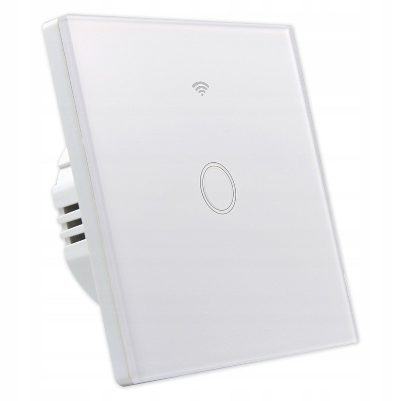 Intrerupator smart touch WiFi simplu, panou sticla alba, Tuya Android/iOS, LED