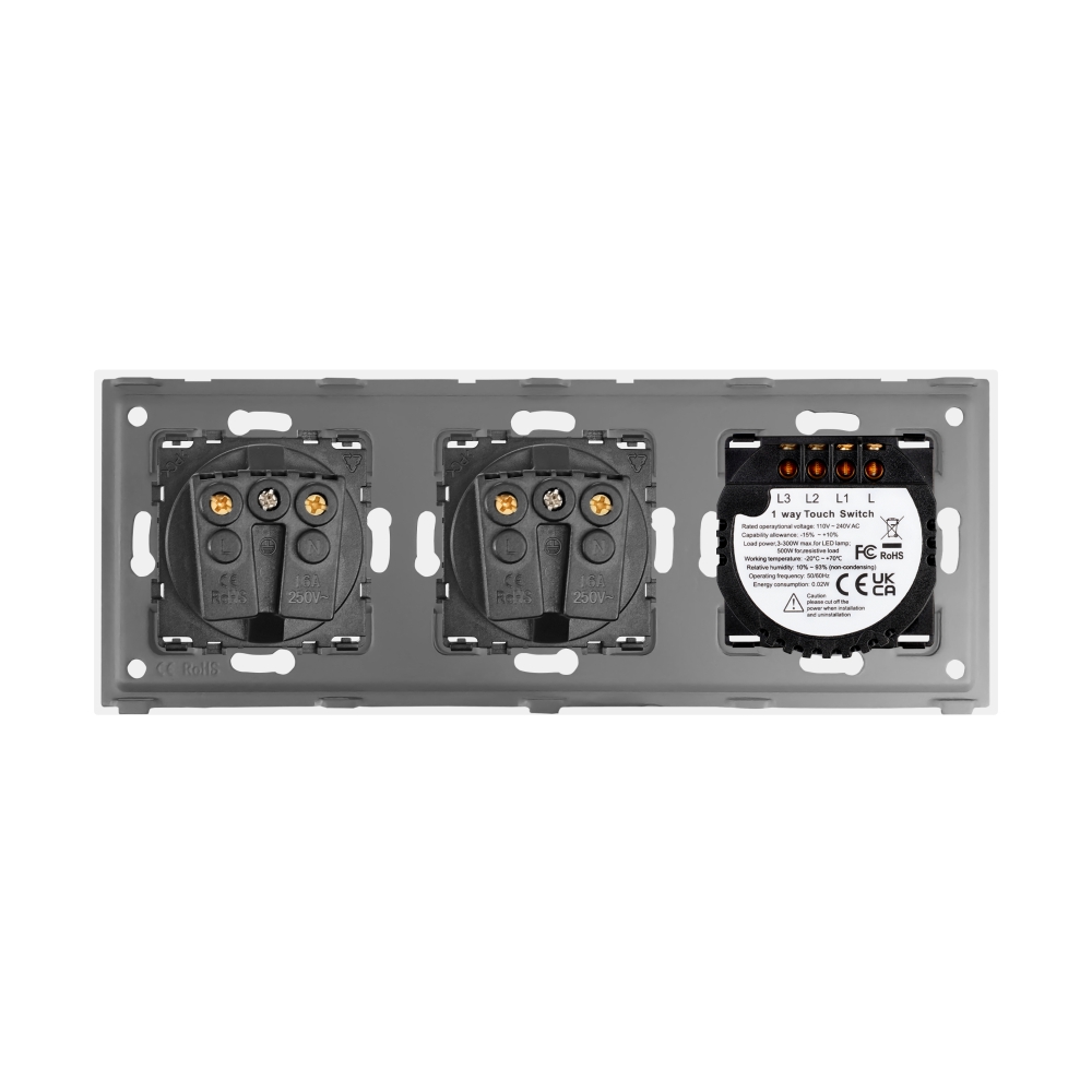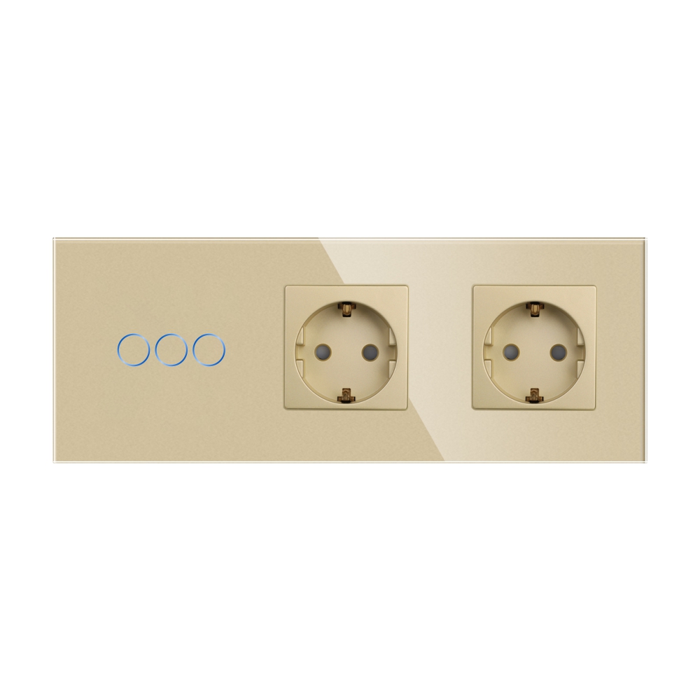Intrerupator Triplu + 2 Prize cu Rama din Sticla LUXION SmartElectro IntelligentHouse