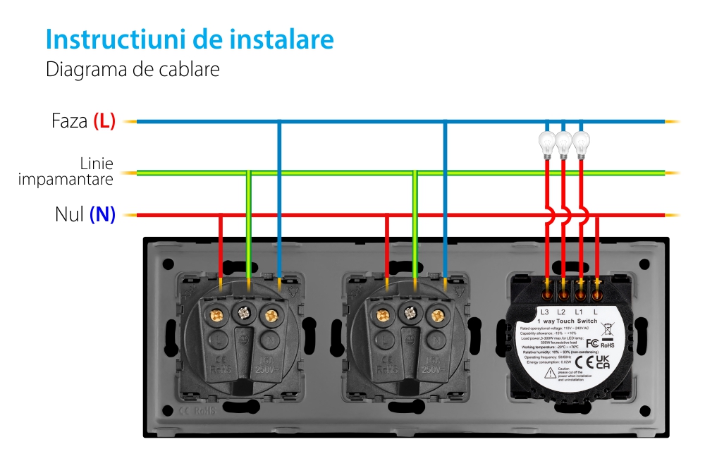 Specificatii Intrerupator Triplu + 2 Prize Rama