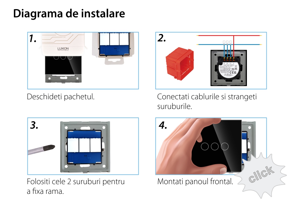 Recenzii Produse Intrerupator Triplu Touch Sticla LUXION, 500W