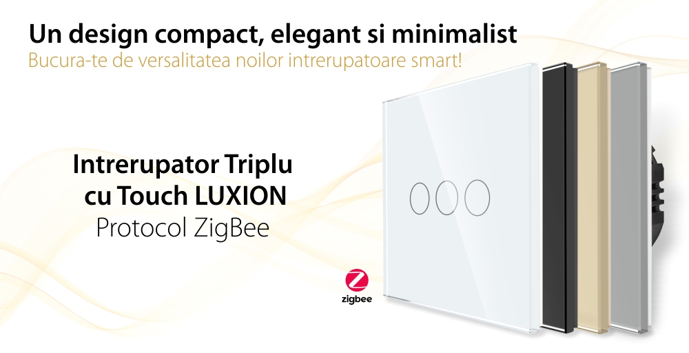 Intrerupator Triplu cu Touch din Sticla LUXION, protocol ZigBee SmartElectro IntelligentHouse