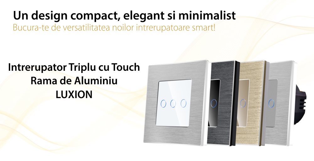 Intrerupator Triplu cu Touch din Sticla si Rama de Aluminiu LUXION, 500W SmartElectro IntelligentHouse