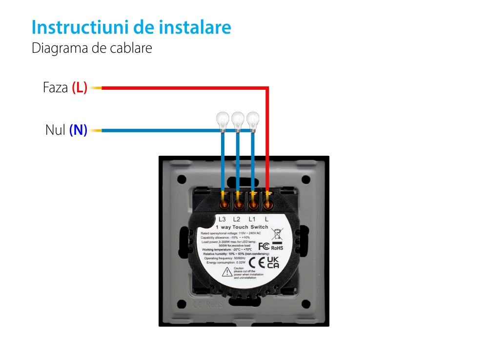Specificatii Intrerupator Triplu Touch Sticla Rama Aluminiu