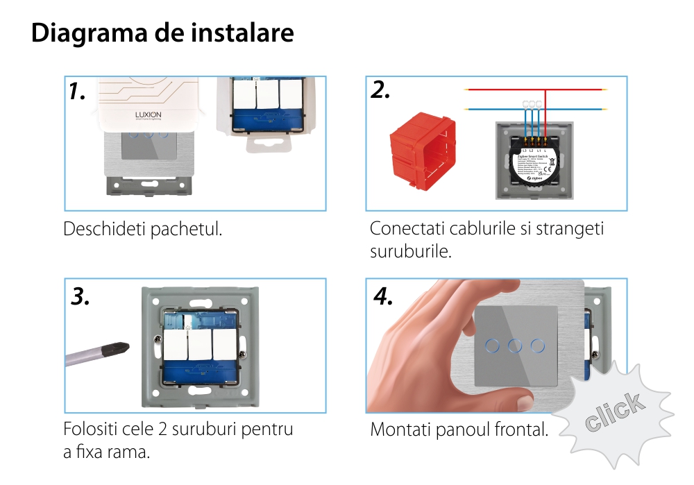 Intrerupator Triplu cu Touch din Sticla si Rama de Aluminiu LUXION, Protocol ZigBee SmartElectro IntelligentHouse