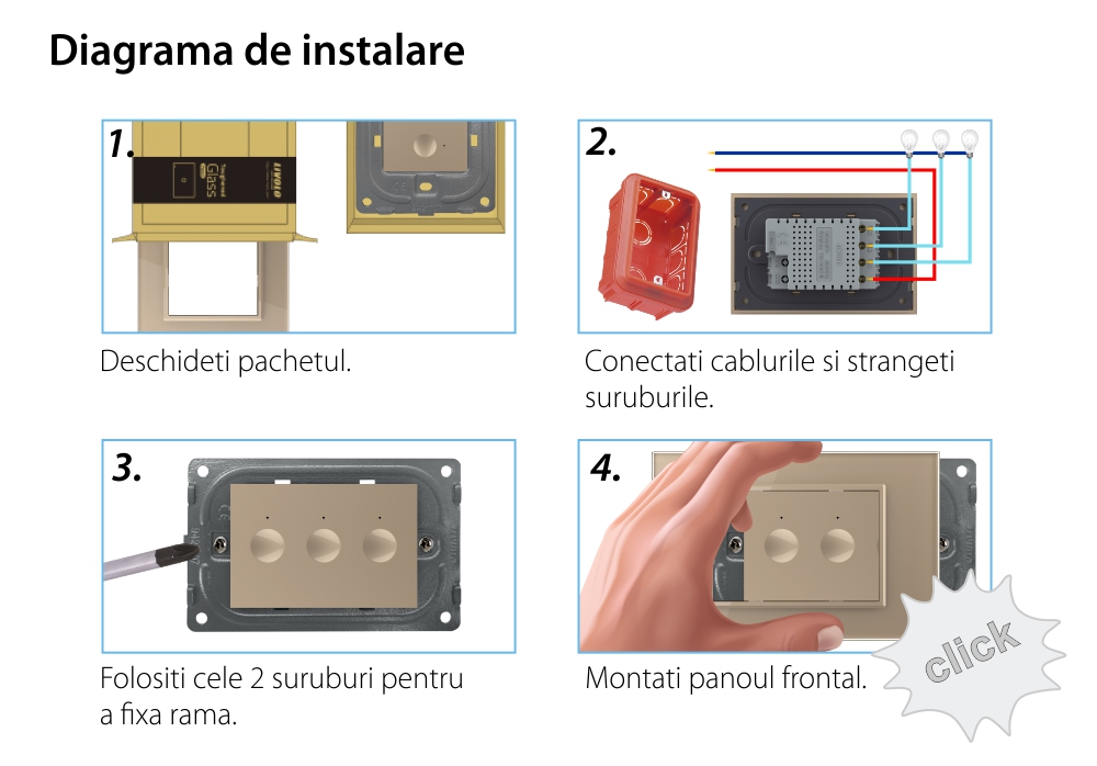 Specificatii Intrerupator triplu touch Livolo rama sticla,