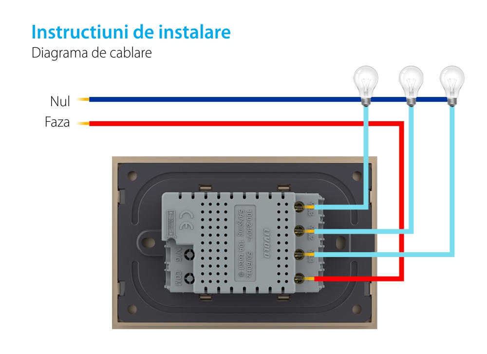 Specificatii Intrerupator triplu touch Livolo rama sticla,