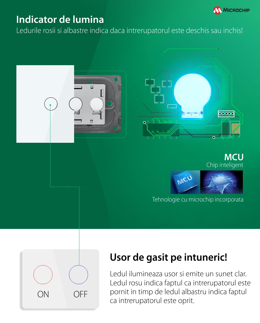 Intrerupator triplu cu touch Livolo din sticla, protocol ZigBee EC cu textura de crystal, indicator de lumina, rezistent la umiditate si la zgarieturi, rafinament la superlativ. Intrerupatoarele Livolo folosesc un senzor tactil cu 100 ms timp de raspuns, similar cu tehnologia folosita la smartphone-uri. Panoul din sticla al intrerupatorului, este din sticla securizata, rezistenta la foc. Ledul rosu/albastru indica statusul on/off al intrerupatorului. Poate fi actionat: - Direct de la intrerupator on/off prin atingere; - De pe smartphone cu ajutorul Hub-ului Livolo ZigBee EC prin aplicatia Livolo (hub-ul se achizitioneaza separat); - Vocal cu Google Home sau Amazon Alexa. Intermediar intre intrerupator si Google Home sau Amazon Alexa aveti nevoie de Hub-ul Livolo ZigBee EC.
