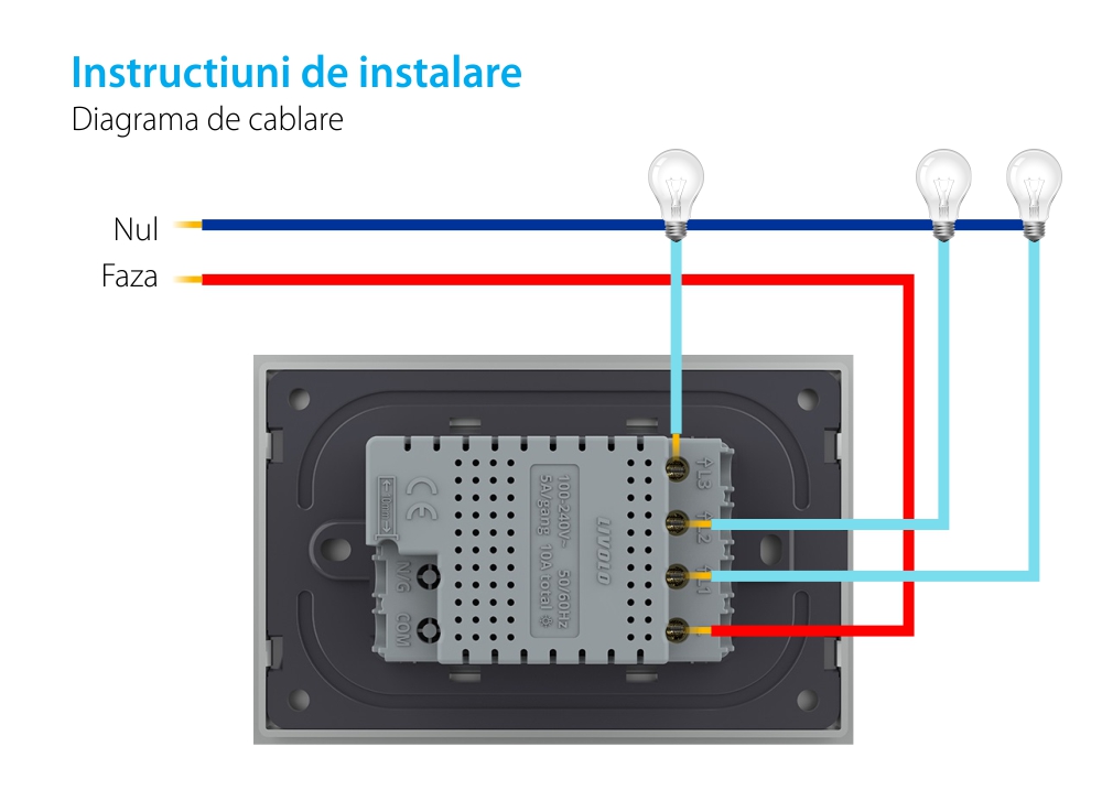 Specificatii Intrerupator triplu touch Livolo sticla, standard