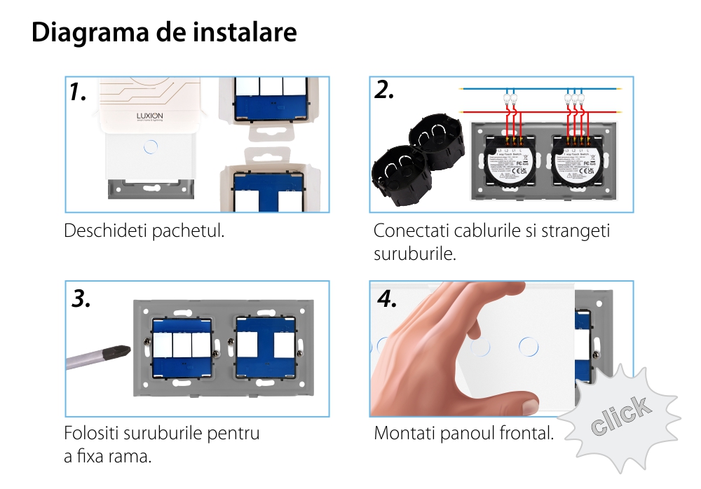 Intrerupator Triplu + Dublu cu Touch din Sticla LUXION SmartElectro IntelligentHouse