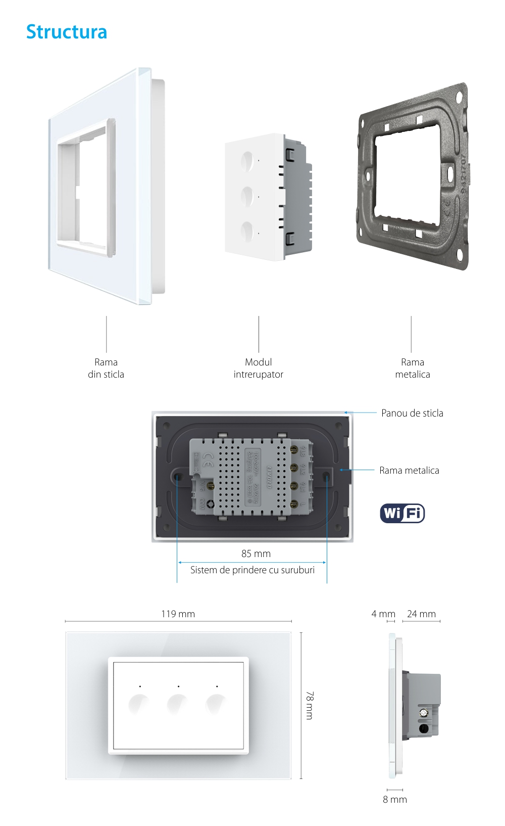 Specificatii Intrerupator Triplu Wi-Fi Touch LIVOLO, standard