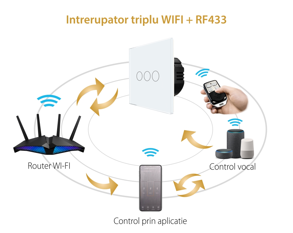 Recenzii Produse Intrerupator Triplu Wi-Fi + RF433 Touch