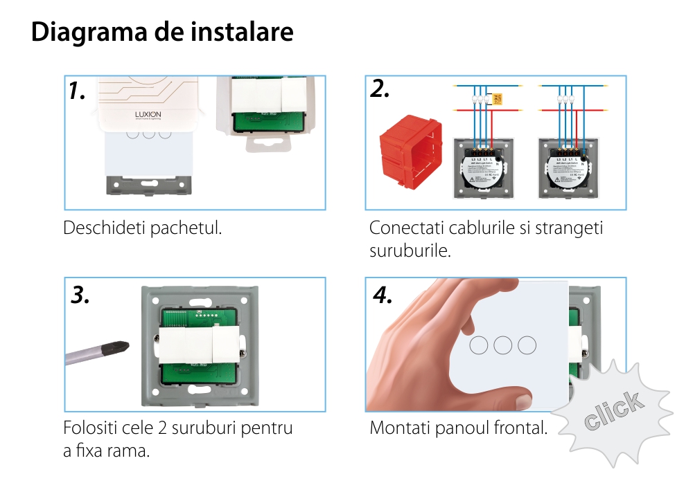 Intrerupator Triplu Wi-Fi + RF433 cu Touch din Sticla LUXION SmartElectro IntelligentHouse