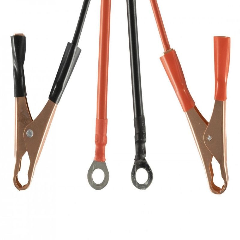 - Cabluri: incluse, cu 2 cleme; lungime aprox. 50 cm