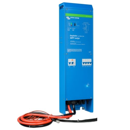 Regulatorul de incarcare MPPT si invertorul/incarcatorul MultiPlus Compact utilizeaza aceleasi cabluri pentru bateriile CC (inclusiv). Bateriile pot fi incarcate fie prin intermediul energiei solare, folosind SmartSolar MPPT, fie prin energie CA de la retea sau de la un generator, utilizand invertorul/incarcatorul.