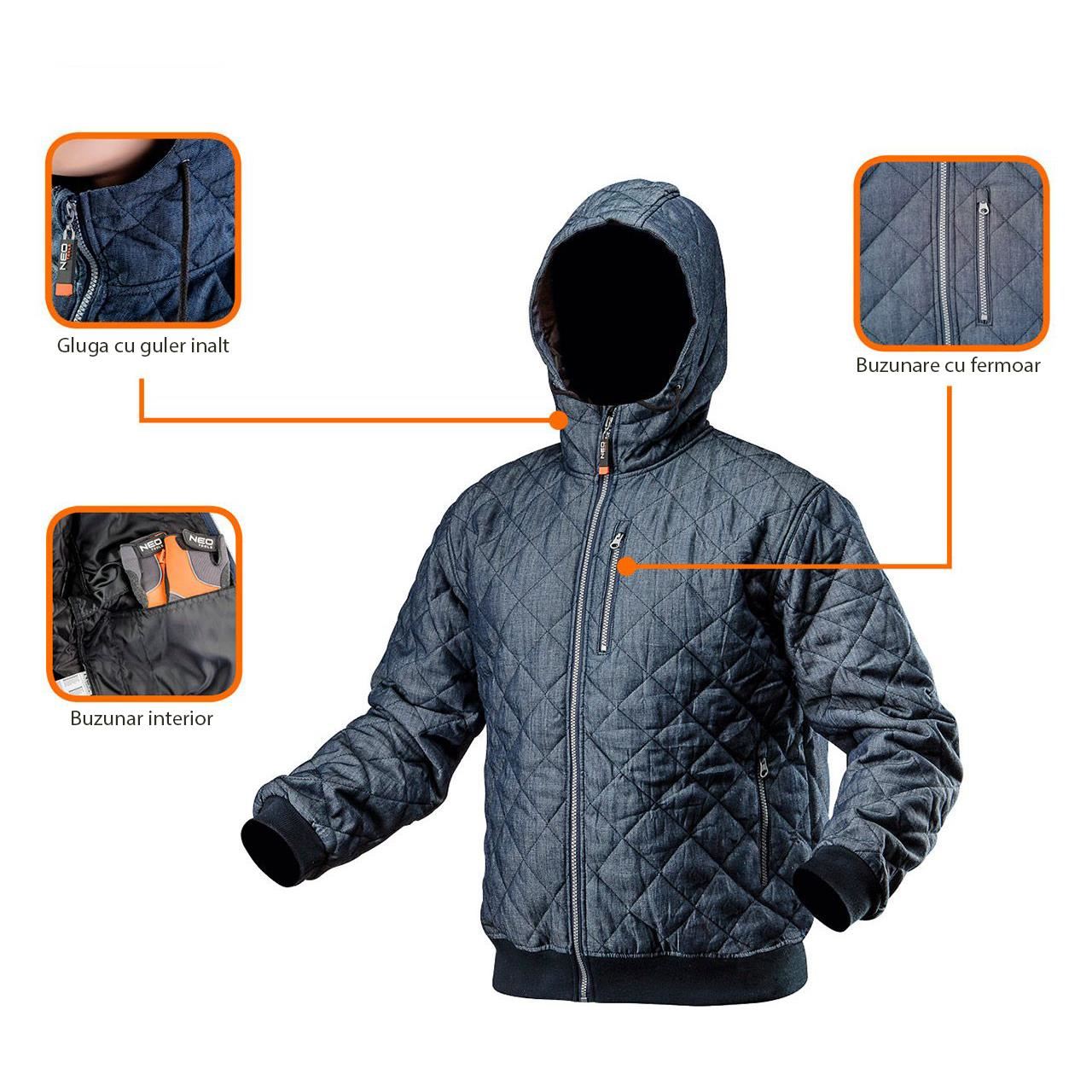 Geaca de lucru matlasata cu gluga, model OUTDOOR, marimea M/50, NEO