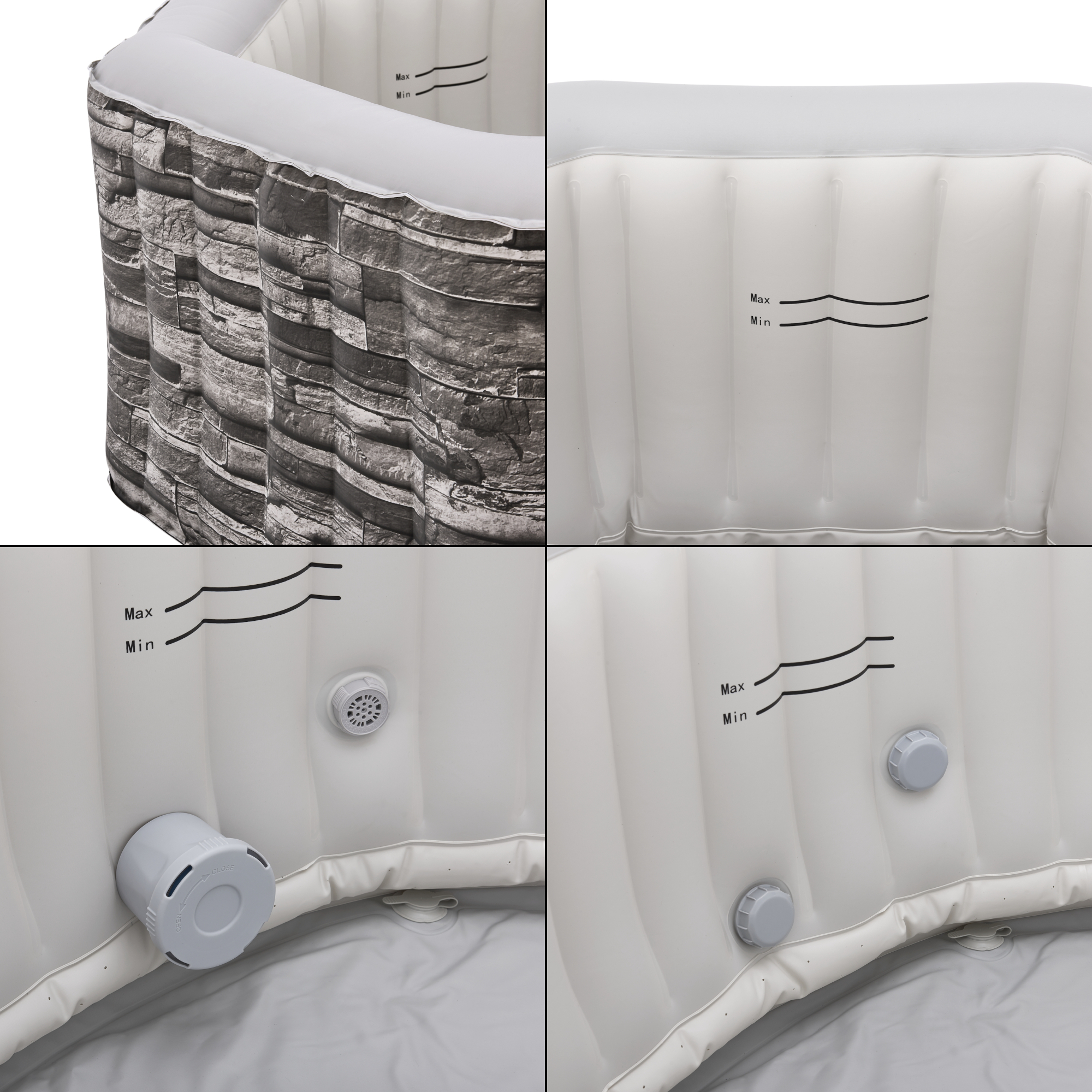 Dupa umflare, jacuzzi-ul trebuie doar umplut cu apa si conectat la unitatea de pompare. Este potrivit pentru utilizare in aer liber, fiind o alegere excelenta pentru seri relaxante, weekenduri in familie sau momente de wellness in confortul propriei case.