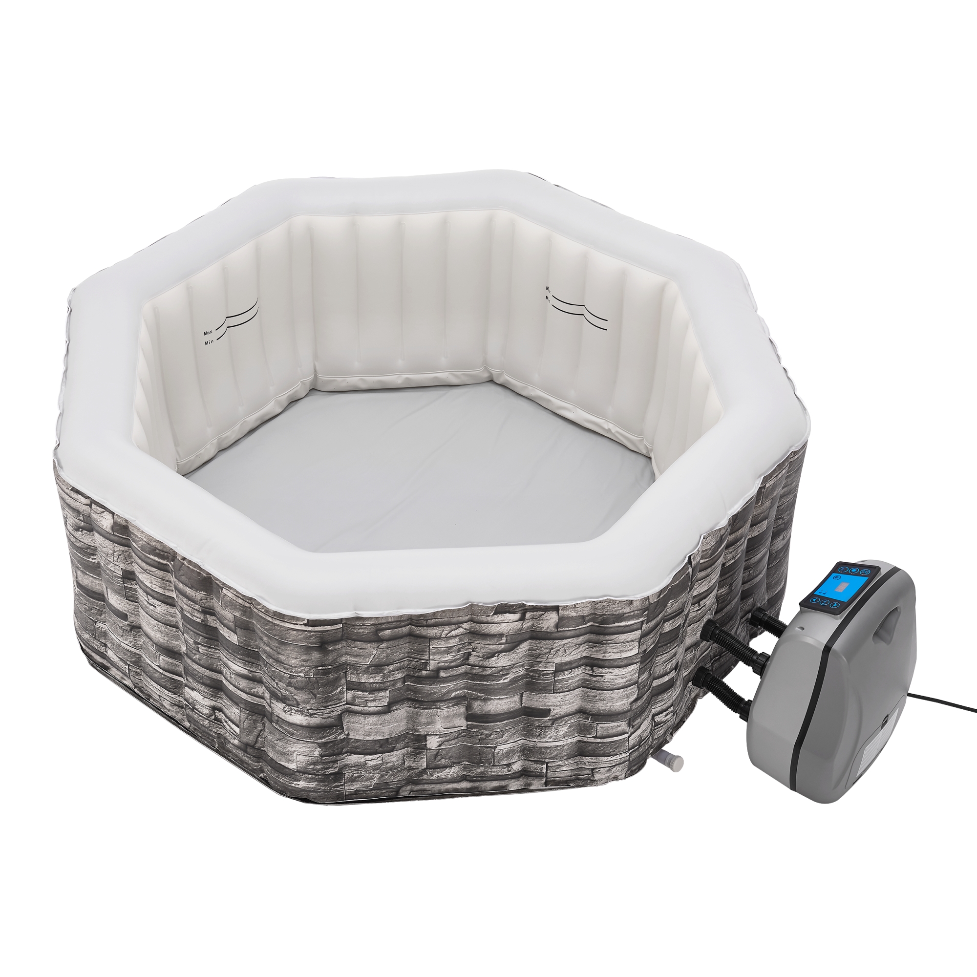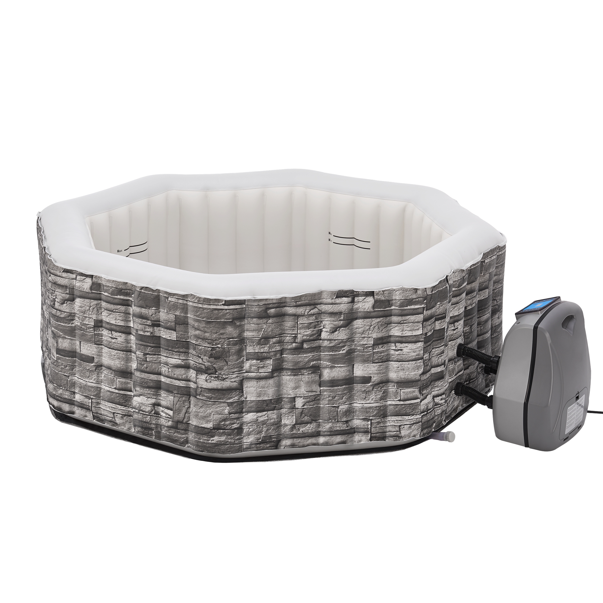 Jacuzzi-ul gonflabil Carosino transforma terasa sau gradina intr-un spatiu de relaxare complet, perfect pentru momente de rasfat acasa. Cu un design modern in aspect de piatra, functie de incalzire, filtrare si masaj cu bule, acest spa gonflabil de exterior este ideal pentru pana la 5 persoane.
