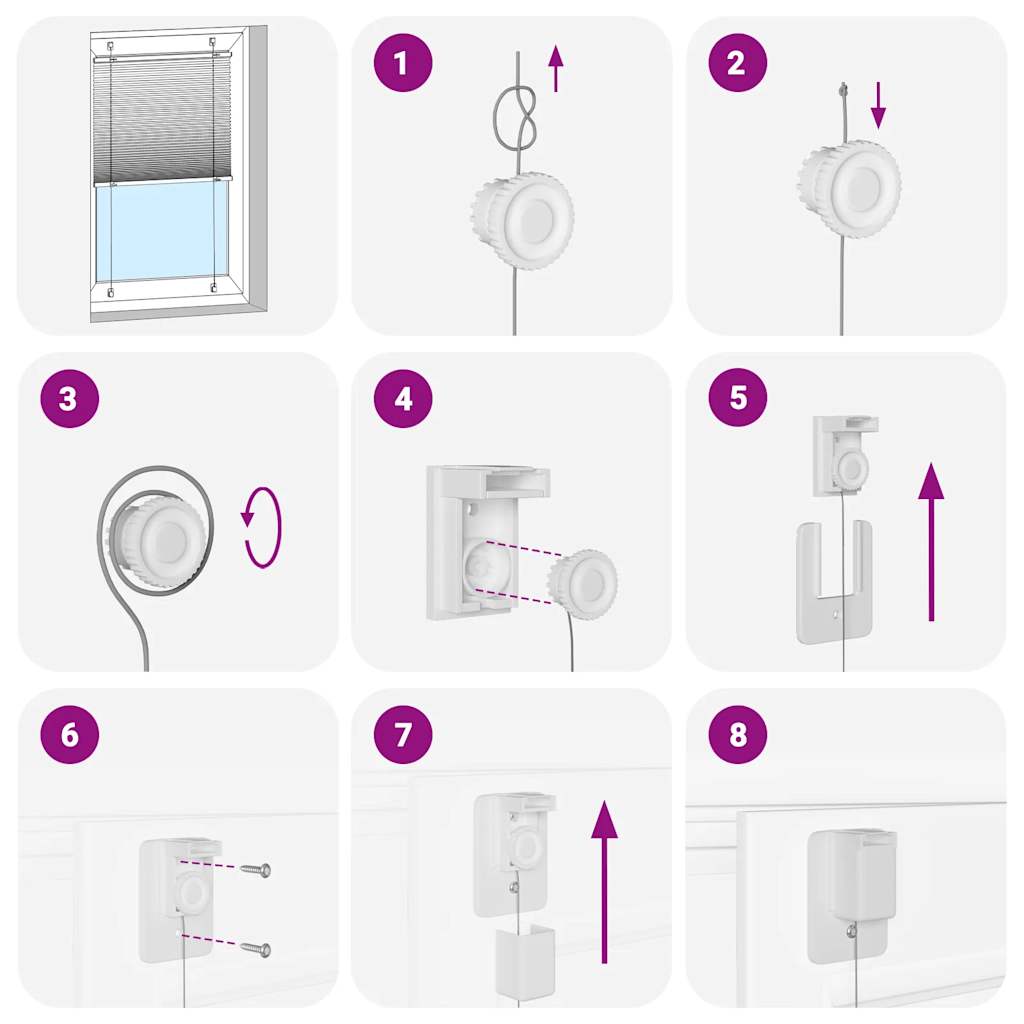 - Două moduri de asamblare: Puteți atașa jaluzea plisat pe perete sau fereastră cu șuruburi sau fără găurire folosind console de prindere, în funcție de nevoi.