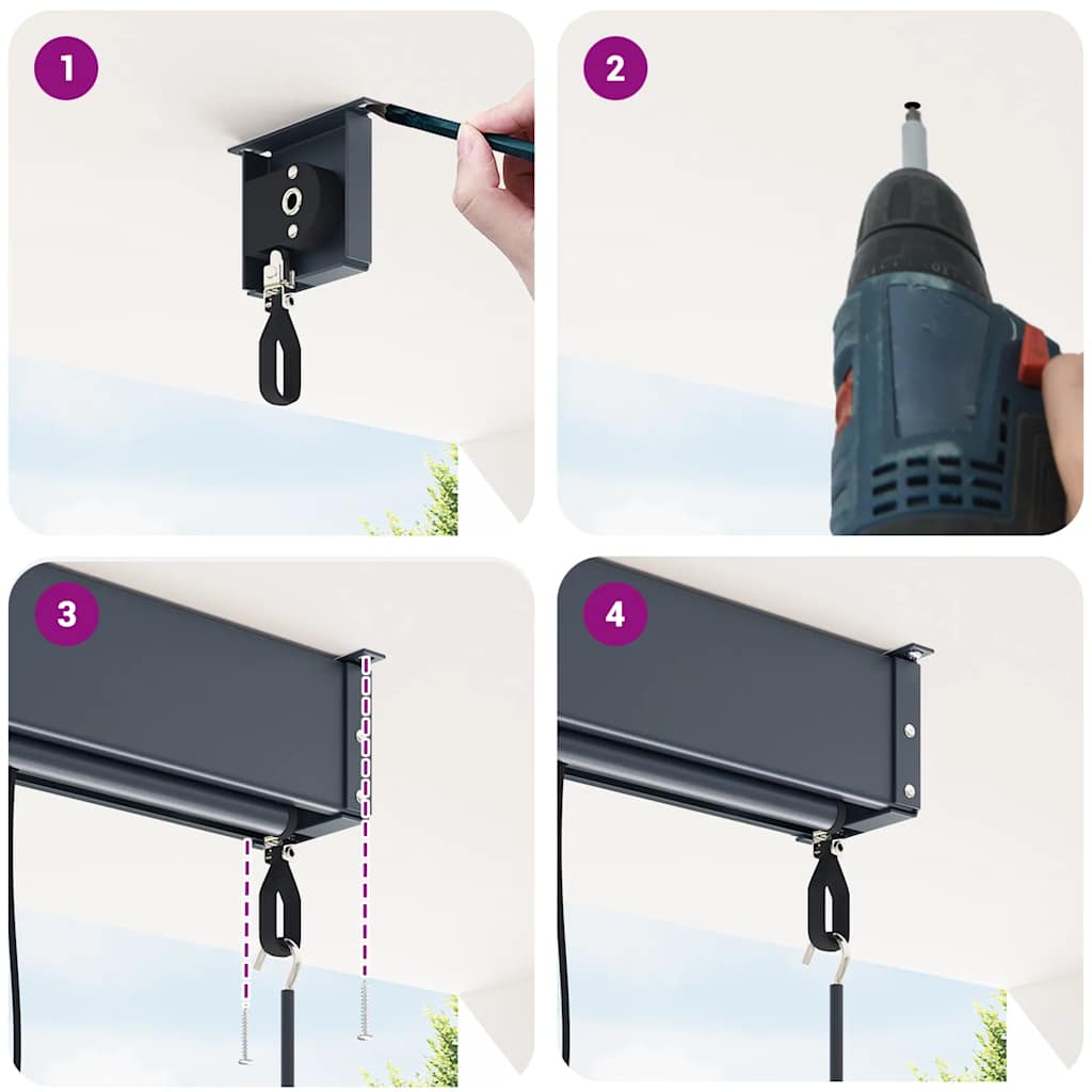Fabricată din poliester care permite trecerea aerului, cu înveliș din PA, această copertină verticală permite circulația aerului și poate bloca, în mare parte, razele dăunătoare. Copertina va oferi intimitate în timpul zilei pe terasă, în grădină sau în alte spații de exterior. Bara frontală din aluminiu și caseta din oțel vor împiedica fluturarea și îndoirea. Datorită mecanismului cu manivelă, puteți deschide și închide jaluzelele cu ușurință.