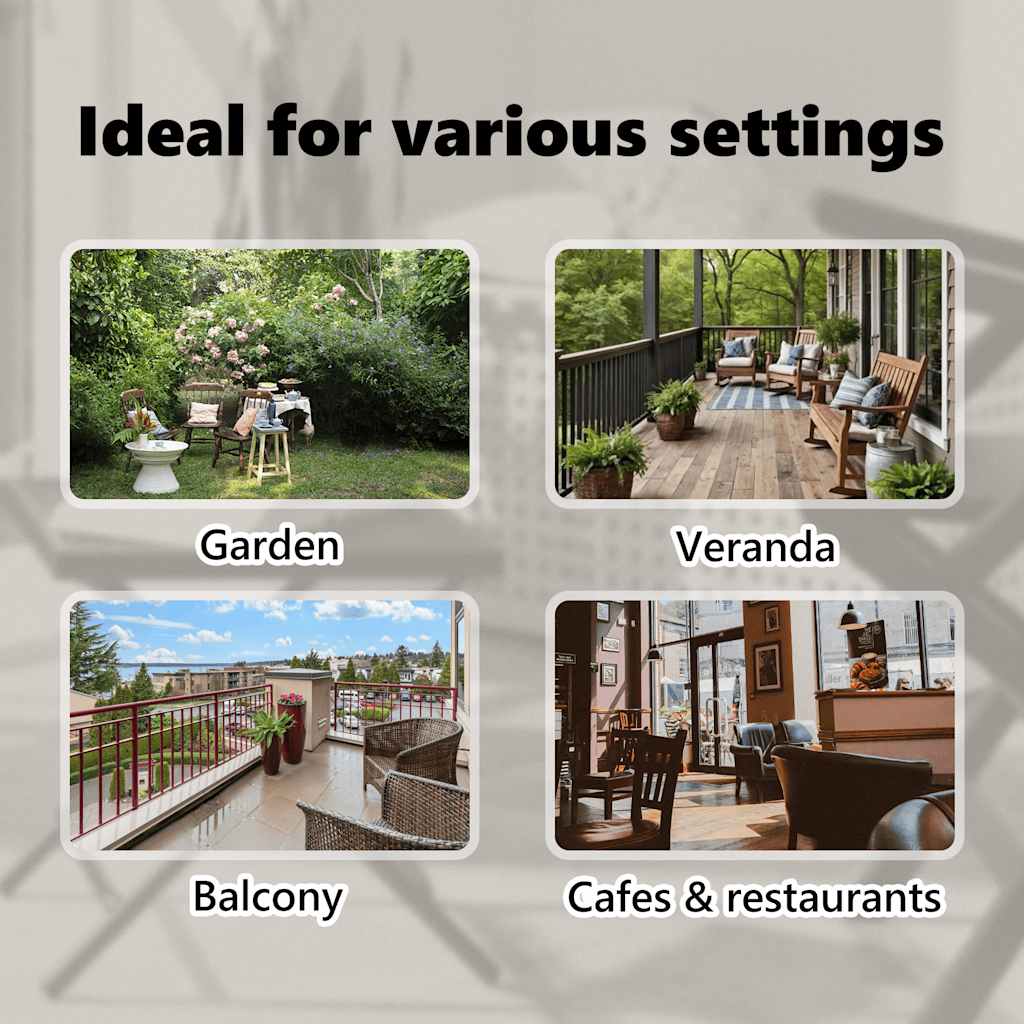 Fabricată din material textil de calitate cu înveliș din PA, jaluzeaua rulabilă este rezistentă la decolorare și poate bloca soarele, permițând însă trecerea aerului. Poate fi rulată în sus și în jos cu ușurință, cu ajutorul sistemului cu manivelă acționat manual. Această copertină verticală este livrată cu doi stâlpi verticali, cu înălțime reglabilă între 225 și 275 cm. Se va potrivi cu majoritatea înălțimilor de plafon și poate fi montată cu ușurință.