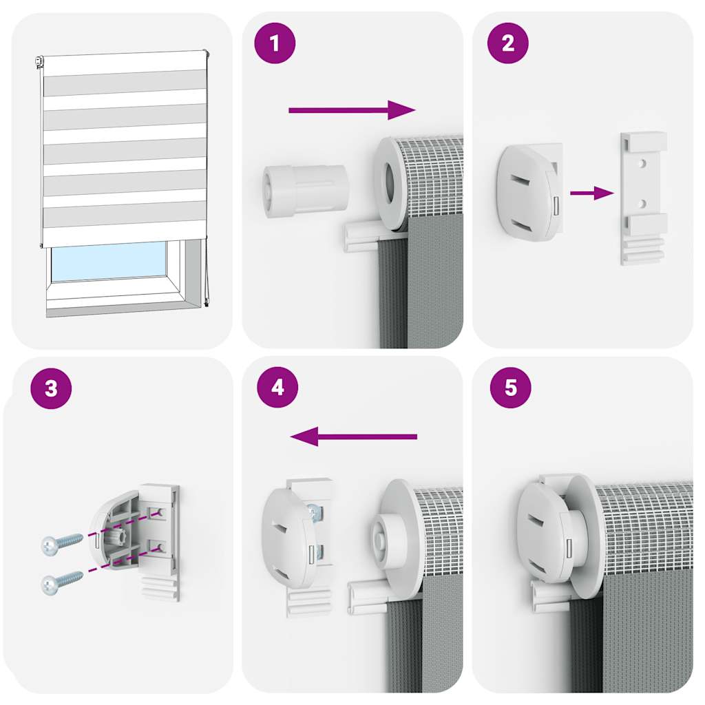- Două moduri de asamblare: Puteți atașa ruloul zebră pe perete sau fereastră cu șuruburi sau fără găurire folosind suporturi de prindere, în funcție de nevoile dvs.