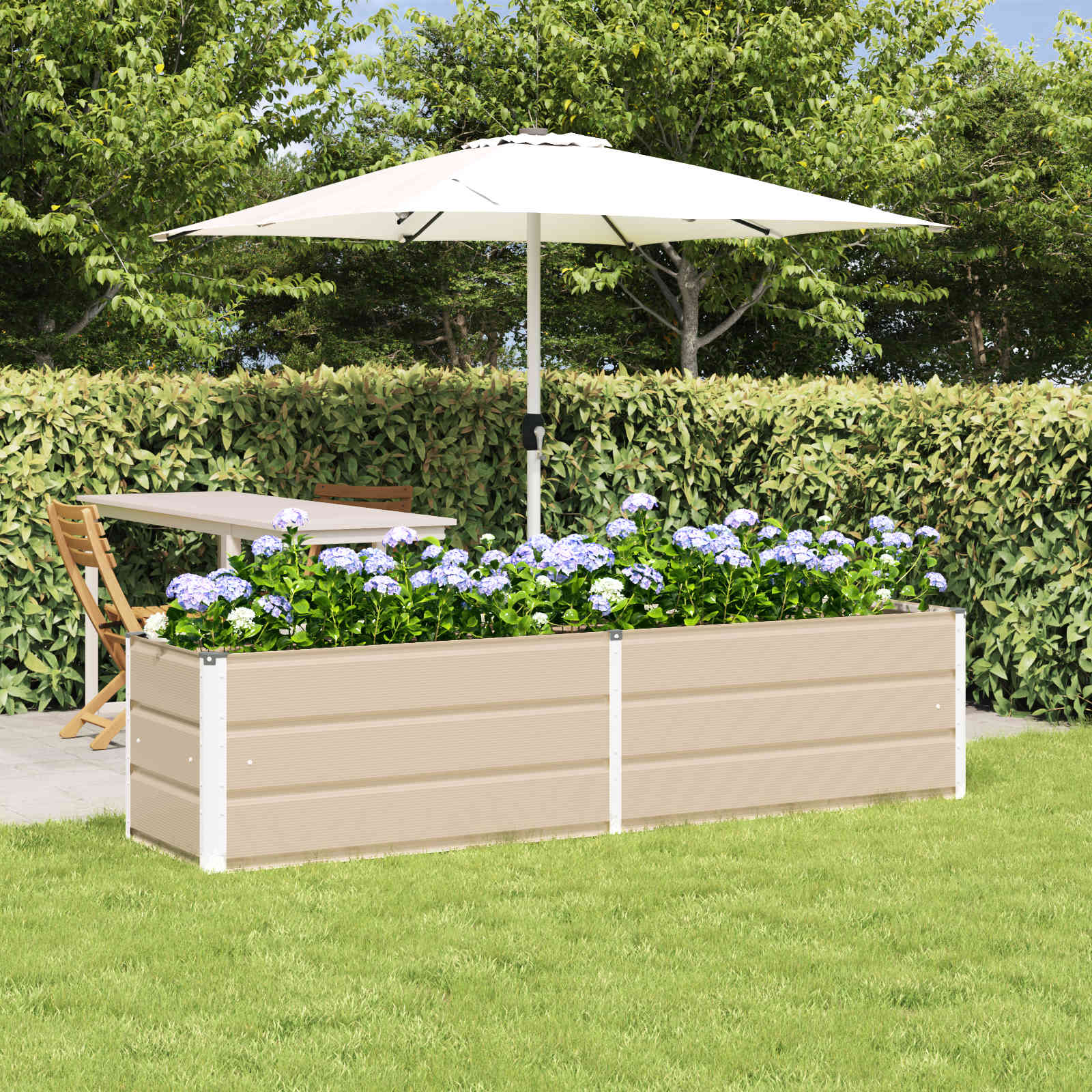 - Utilizare versatilă în exterior: Special creată pentru grădini și terase, această jardinieră din oțel poate transforma orice spațiu exterior într-un loc cald și primitor. Se adaptează ușor la diferite plante și decoruri de grădină.