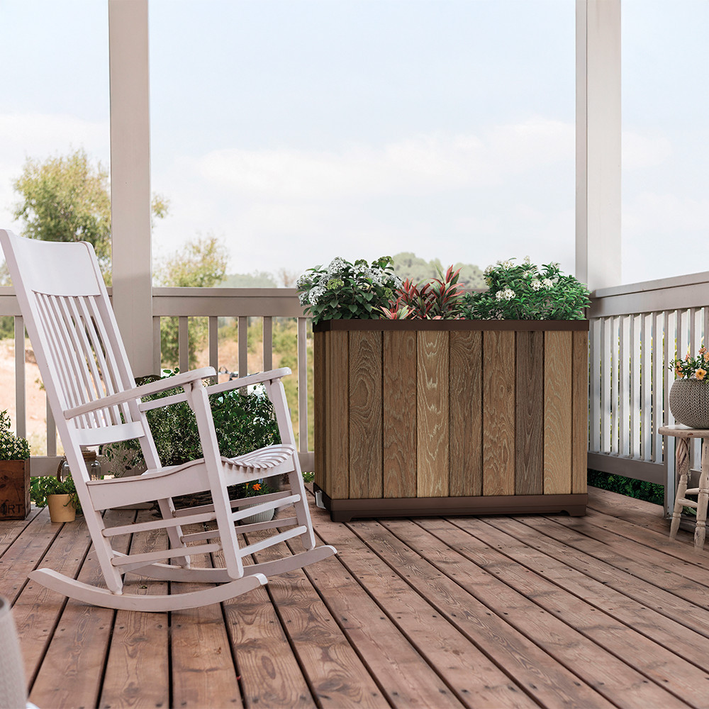 Jardinieră Curver 100 L cu auto-udare, aspect nuc, tip cărămidă, relief