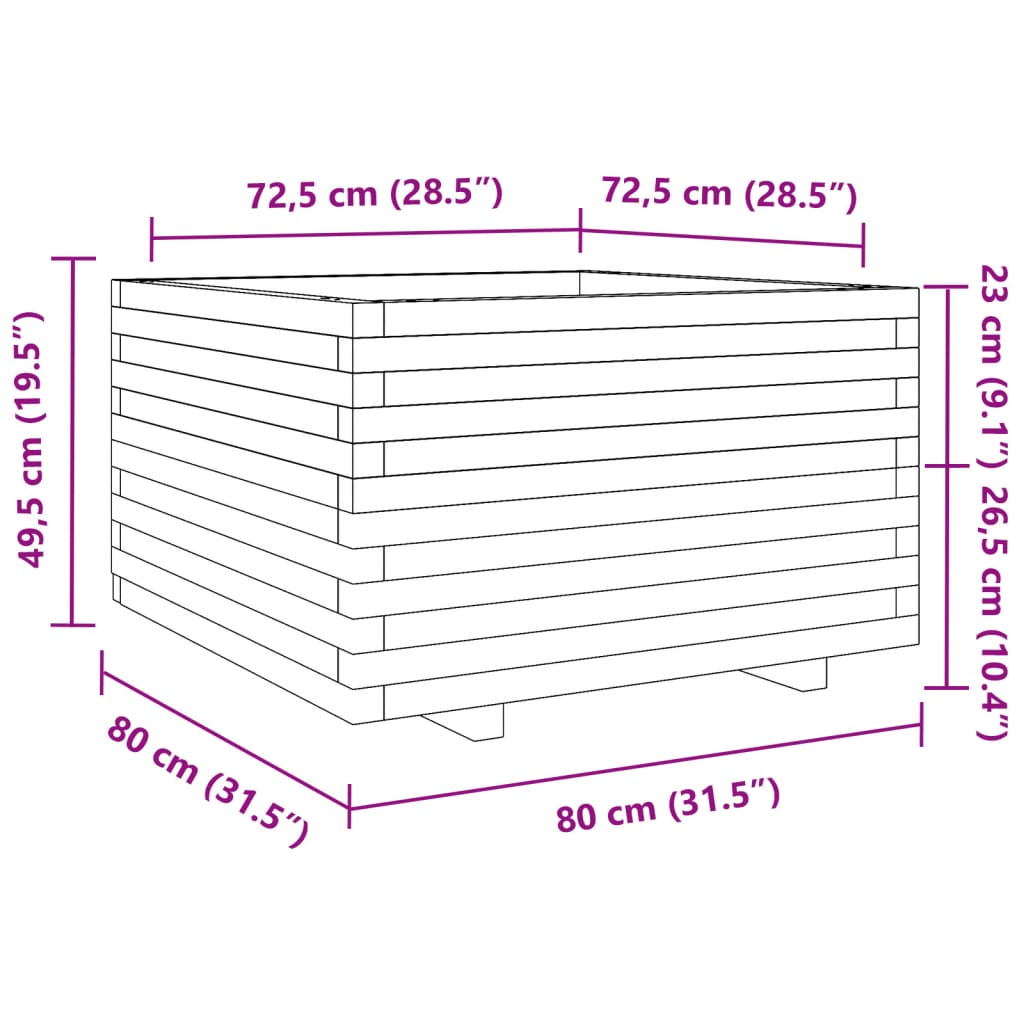 Jardinieră de grădină, alb, 80x80x49,5 cm, lemn masiv de pin GartenMobel Dekor