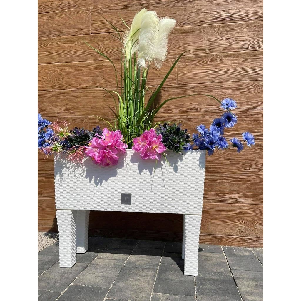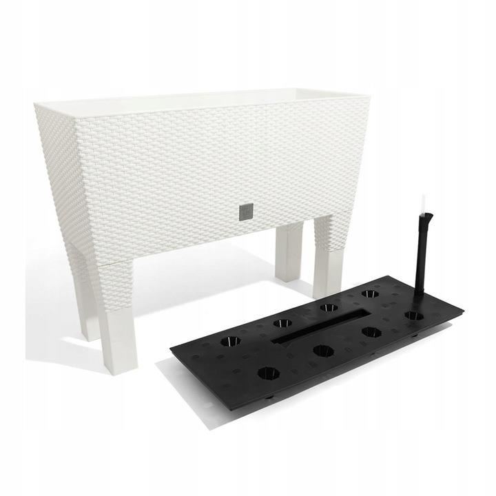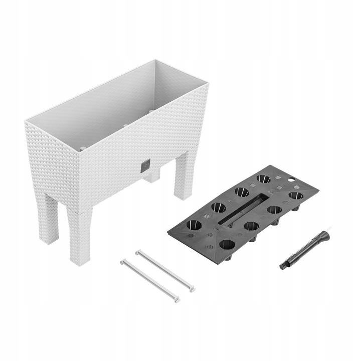 Jardiniera decorativa, cu picioare, sistem irigare, imitatie ratan, alb, 30 L, 60x25x46 cm, Rato Case High