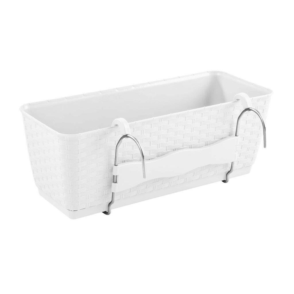 Jardiniera decorativa, Prosperplast, imitatie ratan, suport, alba, 49.2x17.2x17.4 cm GartenVIP DiyLine