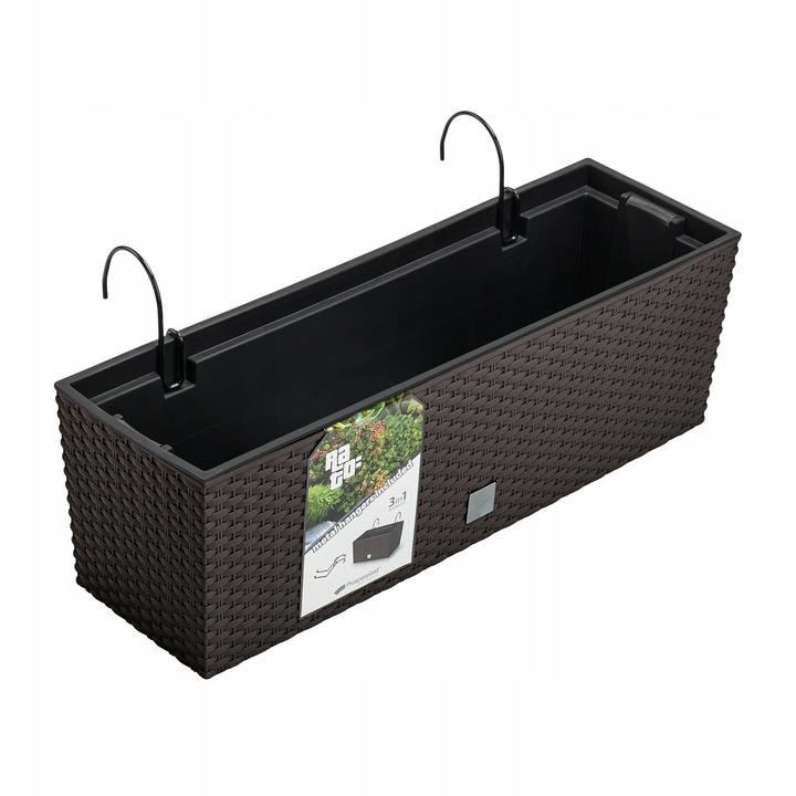 Jardiniera decorativa, suport metalic, imitatie ratan, maro, 58x18x19.5 cm, Rato Case W GartenVIP DiyLine