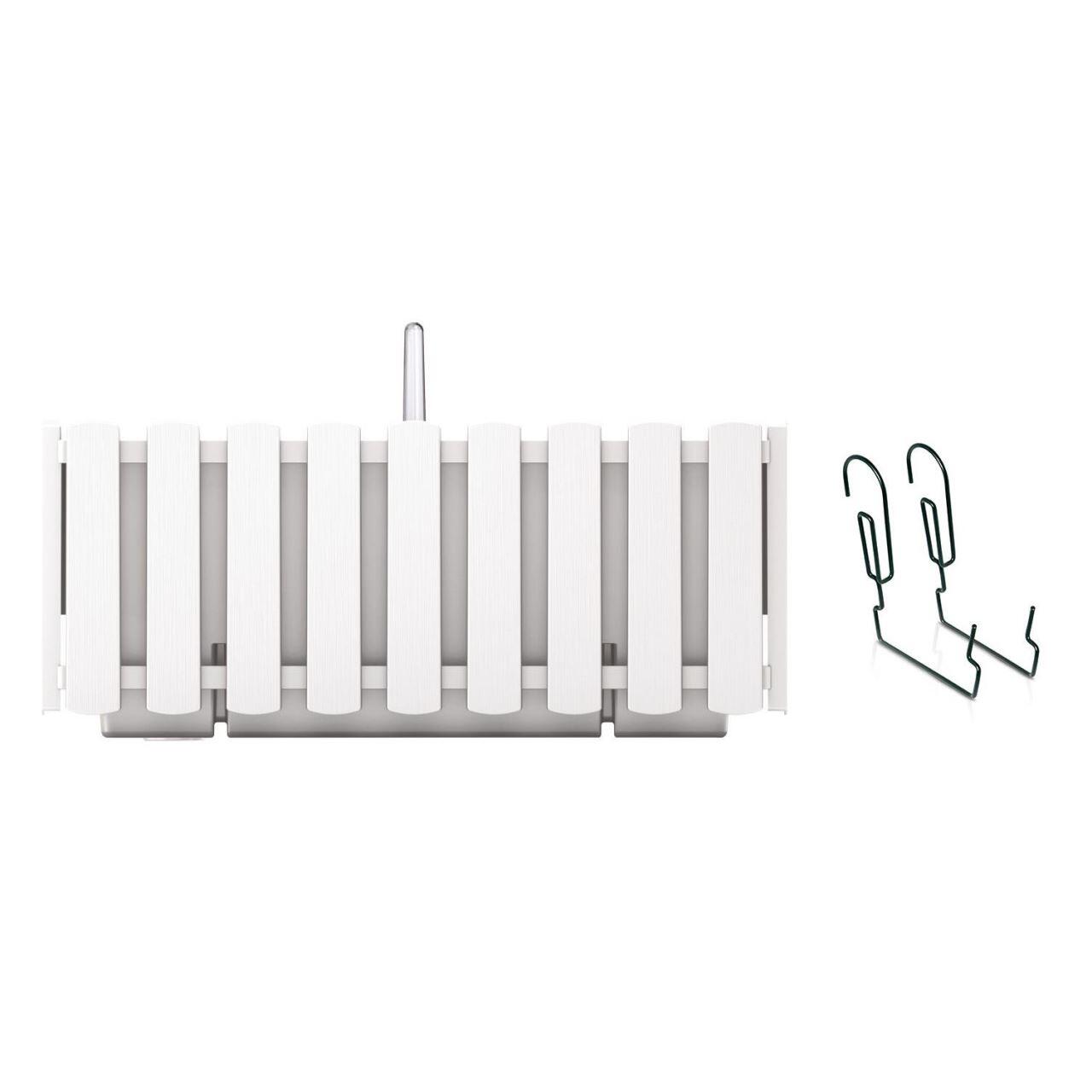 Jardiniera decorativa, suport metalic, sistem de irigare, Boardee Fencycase W, alb, set 2 buc, 38x18x16.2 cm GartenVIP DiyLine
